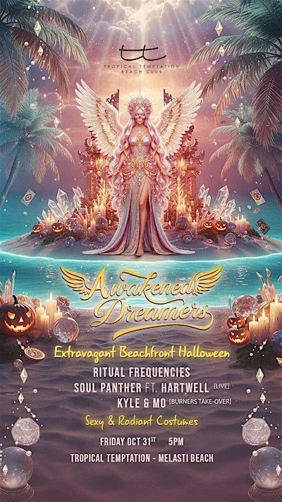 Why Go: Step aboard a high-vibe Halloween celebration hosted by Awakened Dreamers and Ritual Frequencies, where the playa spirit meets golden hour glam. Expect a jaw-dropping sunset setting, deep house rhythms, stunning costumes, and surprises on the sand. Featuring international guest DJs, live vocal sets, body movement performances, and a wildly dressed crowd, this is the high-seas-meets-high-style party of Halloween week.